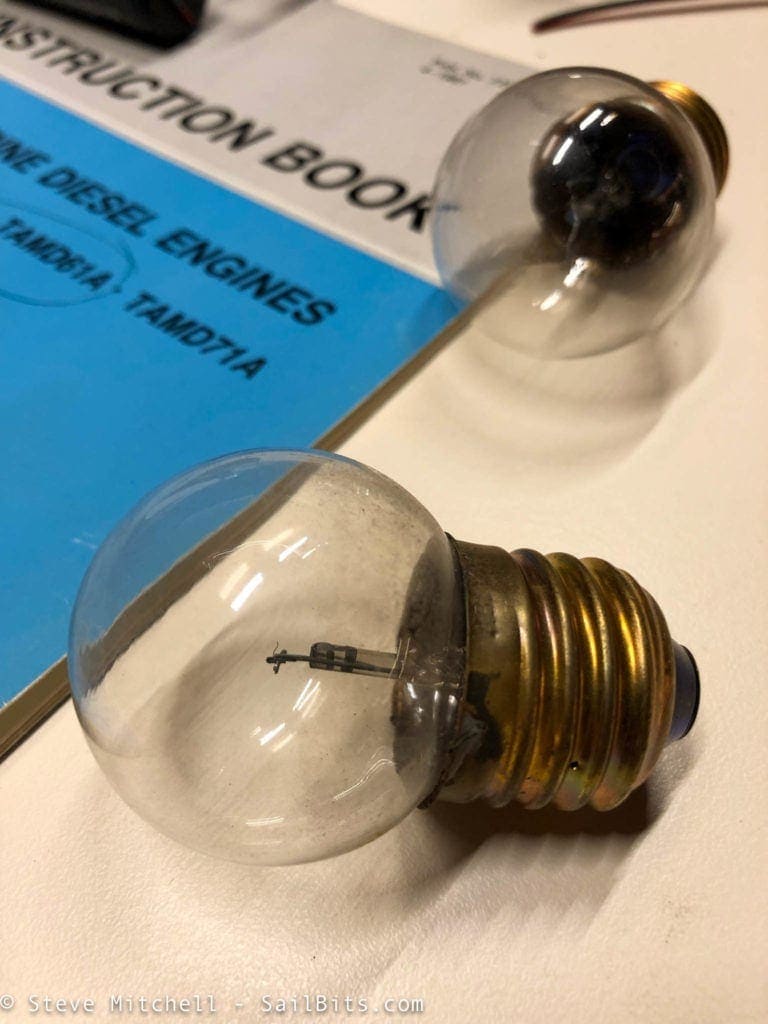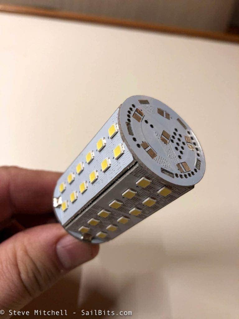 In fact, the fixtures had Aqua Signal 25W incandescent bulbs in them. The Marinebeam lights were the same type of base if not a bit bigger around.