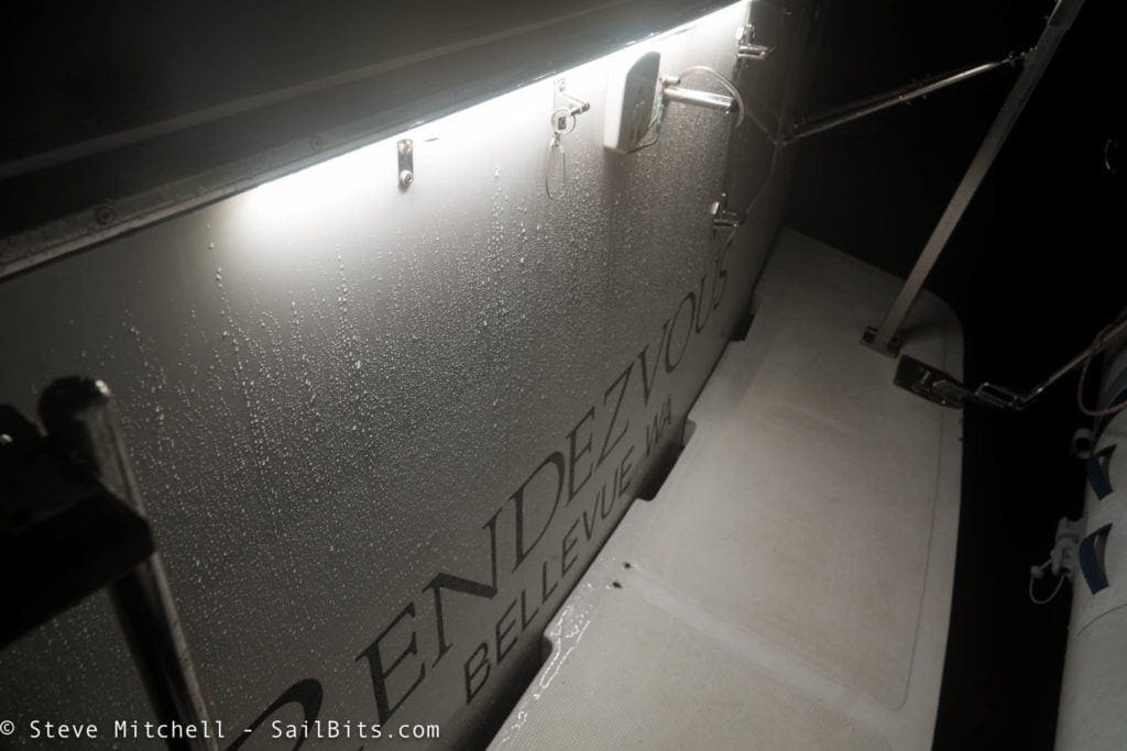 Of all of the updates I did to lighting, this one is my favorite because I can walk/dinghy up to the boat in the dark, light up the whole outside to make sure I am safe to get on. When I leave, I can have all the lights on, get far enough away, and turn everything off.