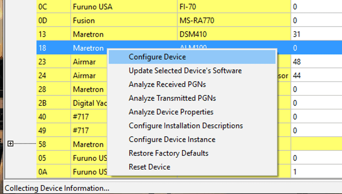 You can of course configure Maretron devices, as well as analyze PGNs and device properties.
