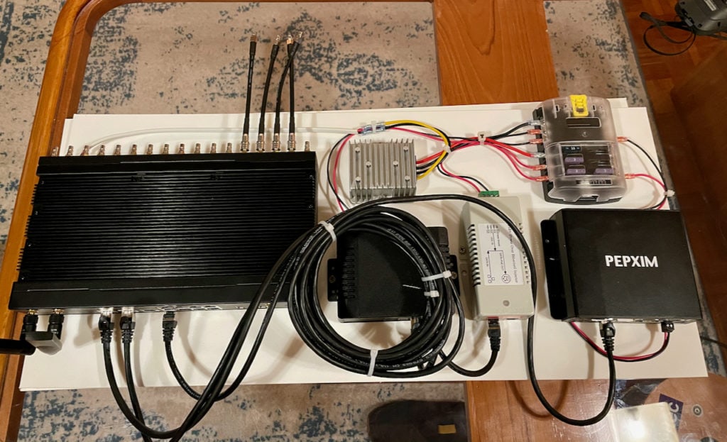 Trying to decide how best to corral them on a panel given the options for install locations. I was worried about heat dissipation with the DC-DC converter, looking at server rack shelves, maybe a 4U bracket to hold it in place. Looking at your layout above above (Peplink MAX router with 56v converter (center top) and several PoE injectors for Domes), I’m wondering what material you used for the mounting panel, as putting everything on one panel is definitely simpler. My issue is limited bulkhead real-estate.