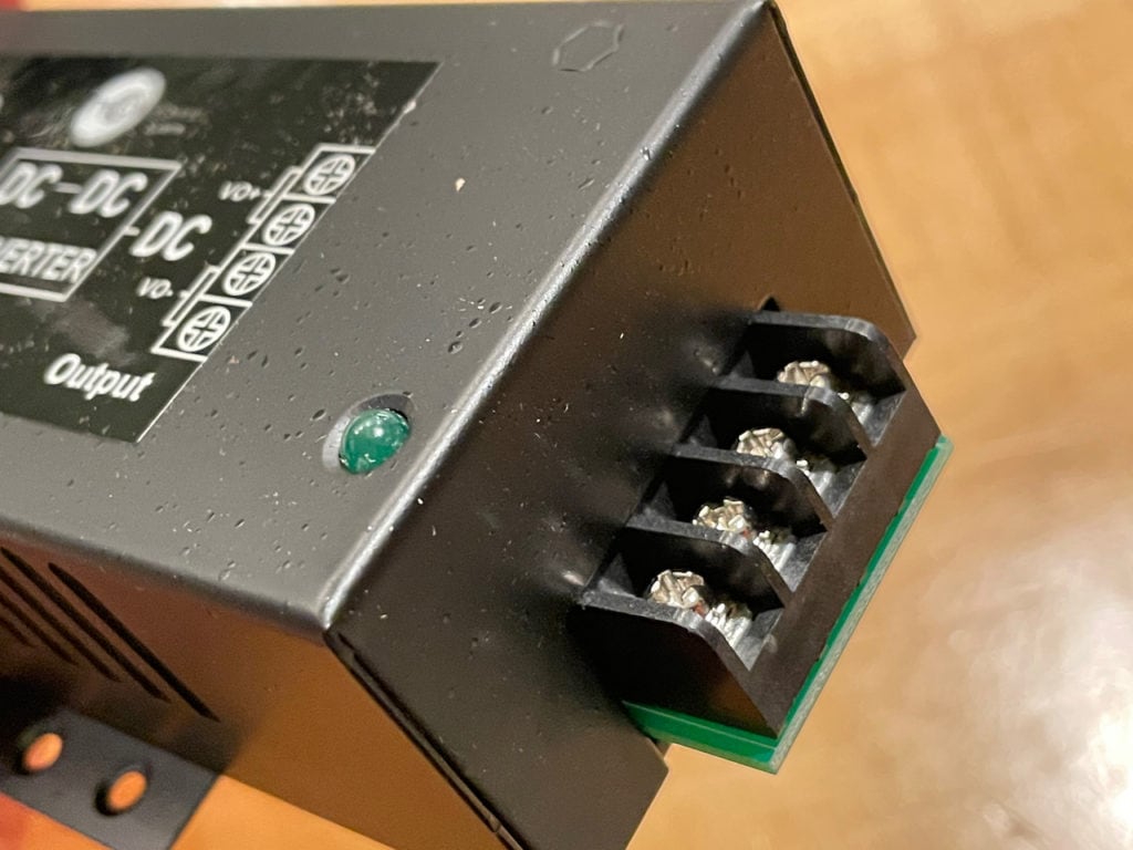 I've used two solutions – one with mixed results (and cheaper), and one with a much better outcome. The first has been voltage converters, commonly called buck-boost converters, from Amazon. They are inexpensive, usually are just a big heatsink with wires coming out of them, and generally do the job. I've had about a 20% failure rate with these, and they tend to get hot and have some voltage variations on output, so be aware that you get what you pay for. The one above I've used to power the Peplink SIM injector as well as several Peplink routers that have PoE ports and is the SMAKN Waterproof DC/DC converter.