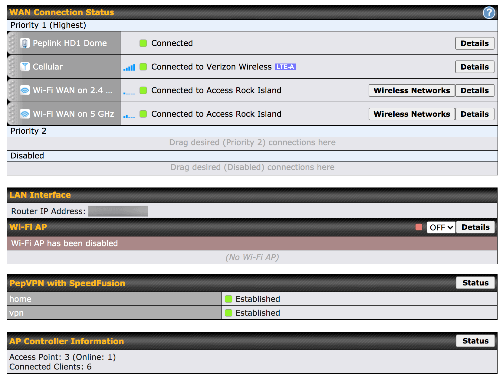 Above in the WAN Connection Status you can see the dual OMNI-496's in use as WiFi as WAN with both 2.4Ghz and 5Ghz bands. I was in Blind Bay near Lopez Island in the San Juan Islands, and somewhere on shore in the bay there was an open public WiFi network.