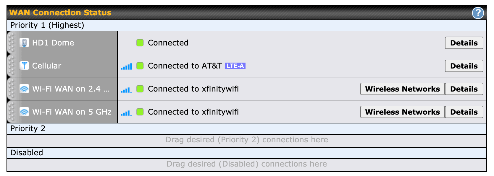My go-to solution for the last few years has been a MikroTik Groove, which is essentially a small outdoor router with an antenna, connected to an indoor router via an ethernet cable. This has been an excellent way to grab remote WiFi signals, but the MikroTik operating system, RouterOS, is very hard to use. In addition, I could only use one frequency at a time without adding a second Groove, which would require more ports on my main router or a switch. It also wasn’t integrated with the Peplink MAX Transit I was using, which caused some interesting catch 22 situations where configuring it required some workarounds when a WiFi network wasn’t connected.