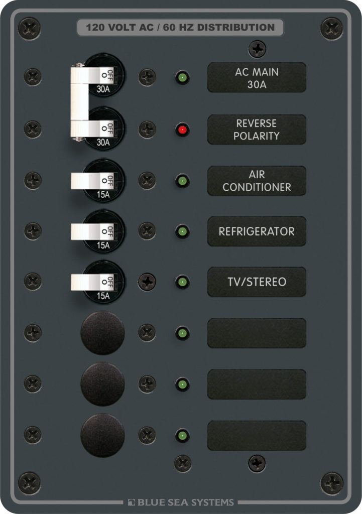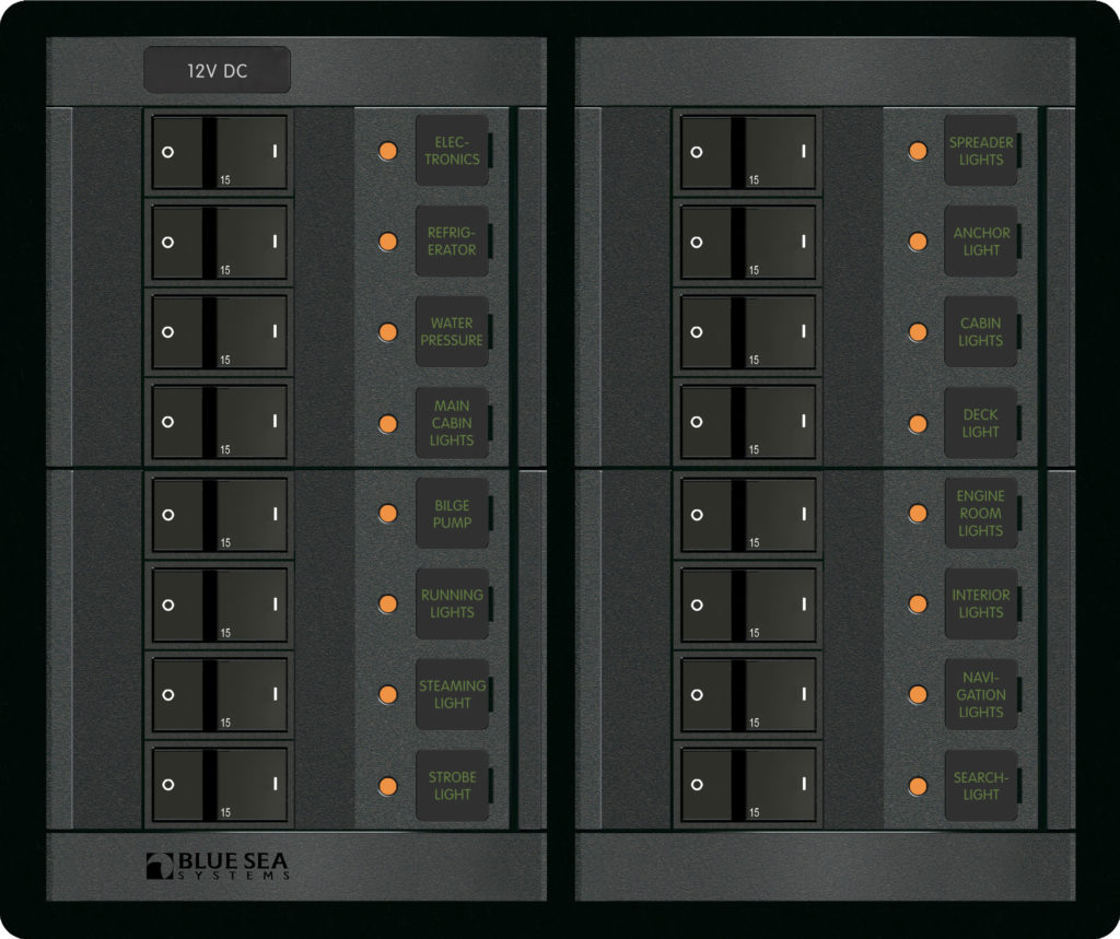 This uses BlueSea Traditional Panels for both AC and DC, gets me more circuits for both AC and DC, and meets my requirements for lighting and such. However, they are bigger than any other solution, and leave little room for other things.