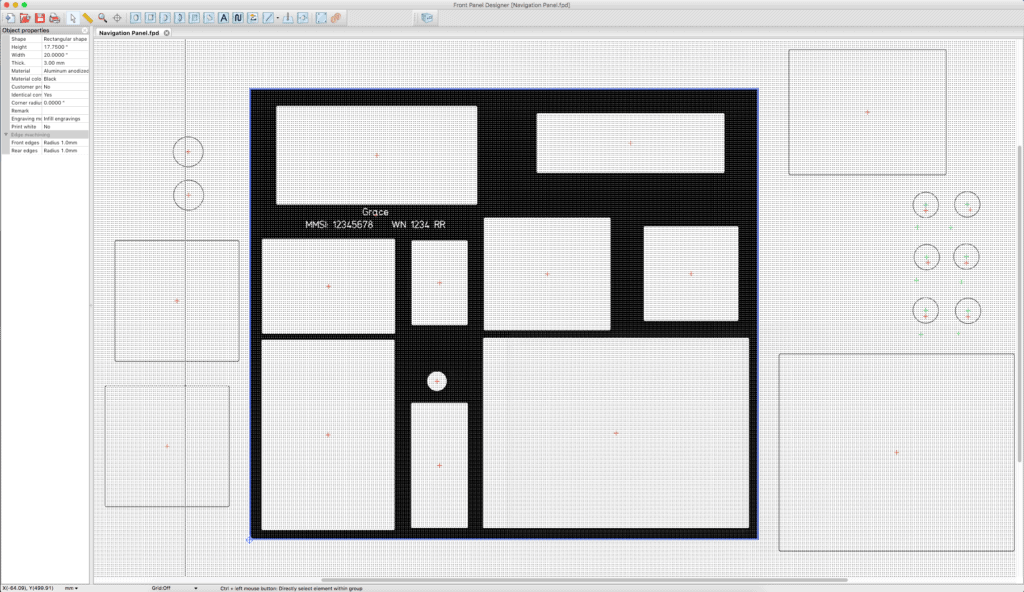 I have made my choice for the panel – I will be designing one using Front Panel Designer and having Front Panel Express produce it. I have done this before for the navigation panel on Jammy, and ended up making over 10 different panels with their service. The power is in the Front Panel Designer software, which allows you to choose the type of material, thickness, and coverings, make holes, squares, and other shapes, and add labels plus more. All of this is then easily sent directly from the software to their site, and your panel is manufactured on their state of the art systems and sent to you a week or two later.