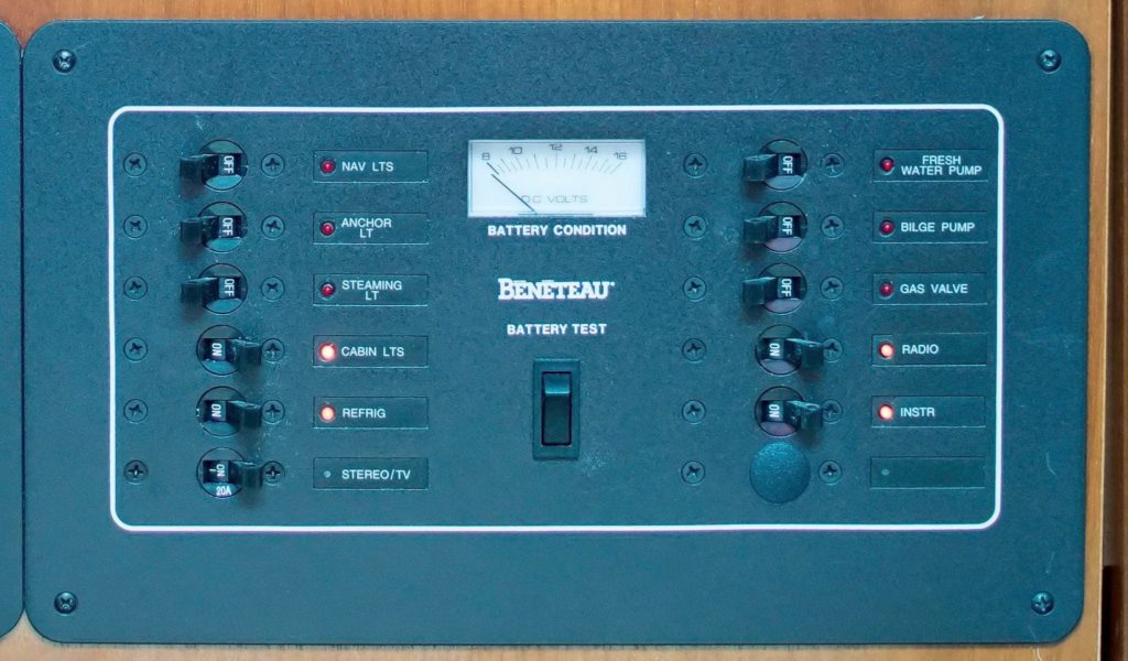 I think the panel takes up far too much space for 12 circuits, and I hate that I can’t ever figure out where the cabin lights circuit is when I am in the dark. The battery test button and meter is not needed with all of the MasterVolt instrumentation I have. While the circuit breakers are relatively inexpensive, finding ones that have the light has been challenging, and I don’t like the bus in the back that you have to work with.