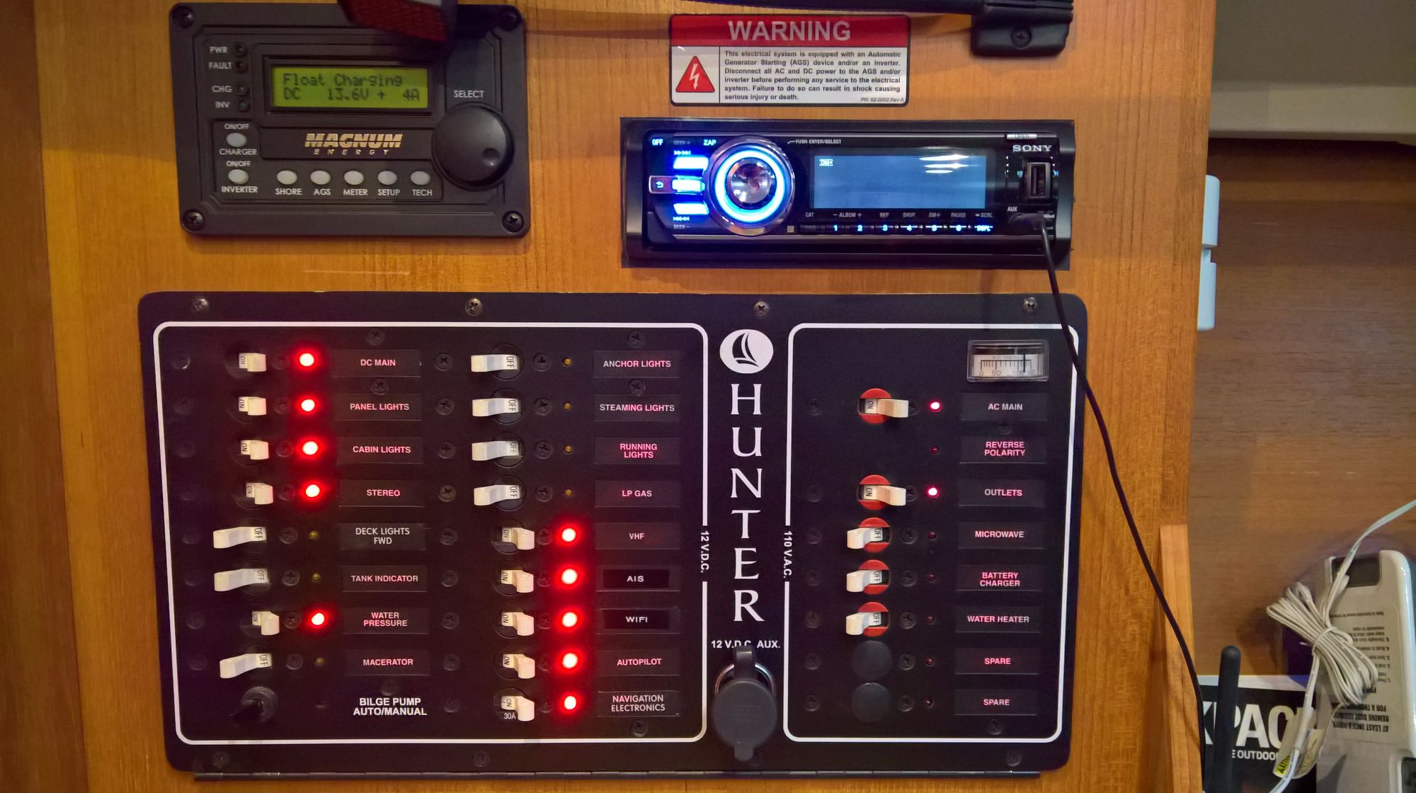 Although, I too have been having issues with my DC panel getting too crowded. I wouldn’t mind separating both the radar and the AIS from the “Nav/Electronics” breaker – although I have discovered it isn’t too hard to power down the radar from the Raymarine Chartplotter’s interface.