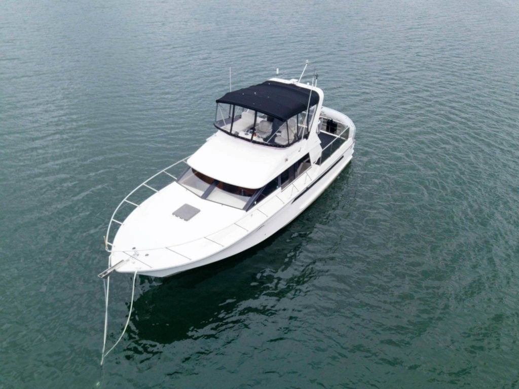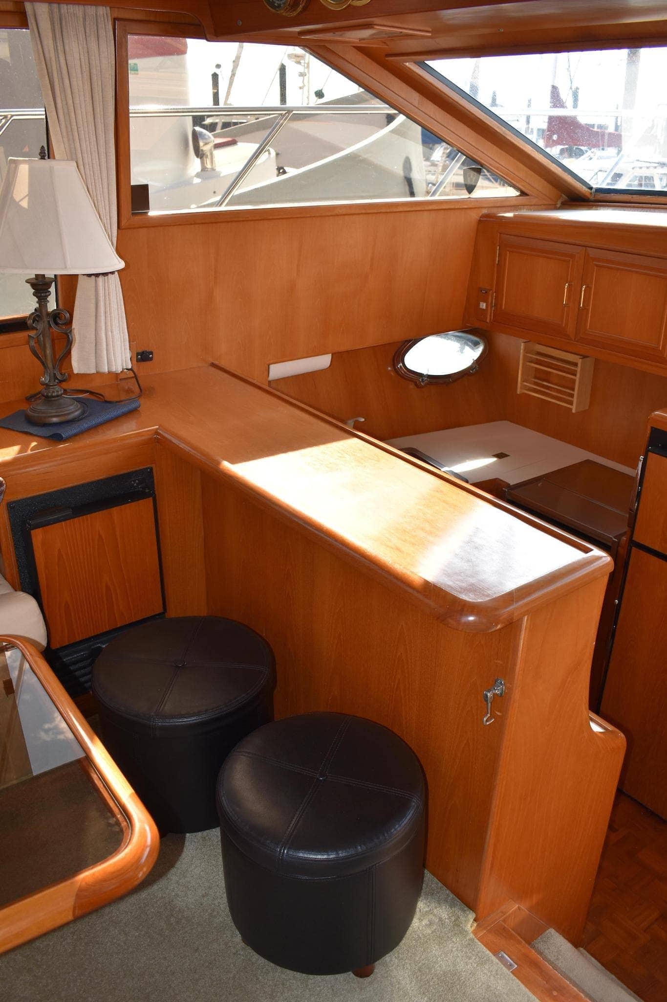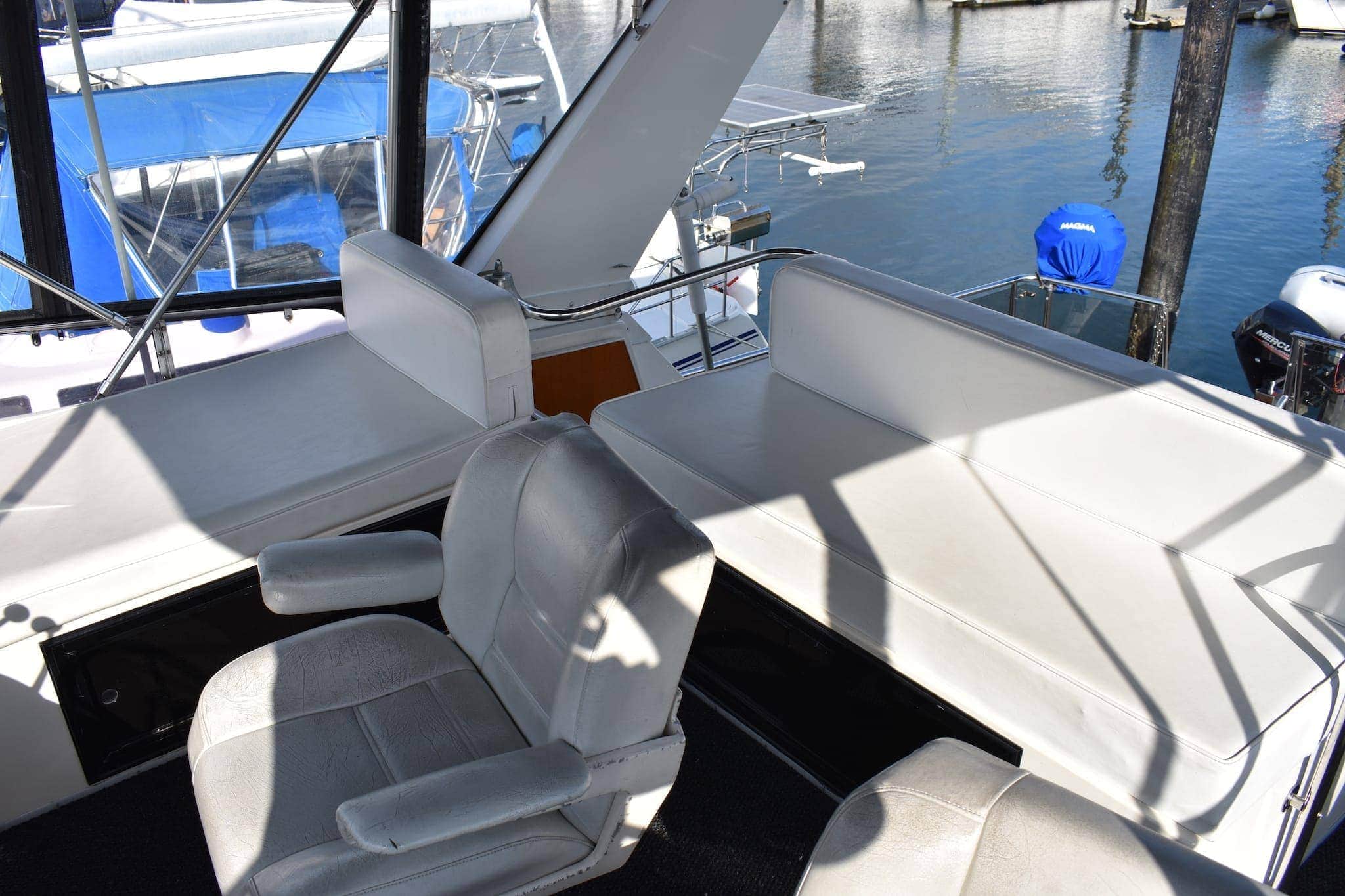 She is setup to accommodate 4 adults over night very comfortably, but in a pinch can handle more, especially for day cruising. With a queen master, v-berth, spacious salon, galley, and dinette, interior space is setup to allow for comfort while underway and at anchor. Outdoors, there is a big sun deck, and a covered flybridge with tons of seating.