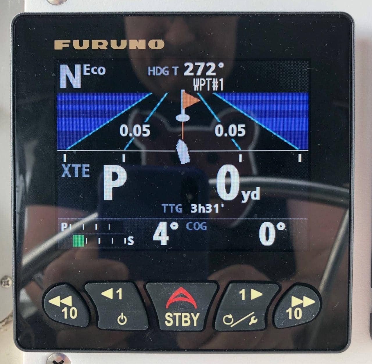 I also have a wireless handheld remote for the Furuno NavPilot 300 system in case I choose to use the autopilot from this location.