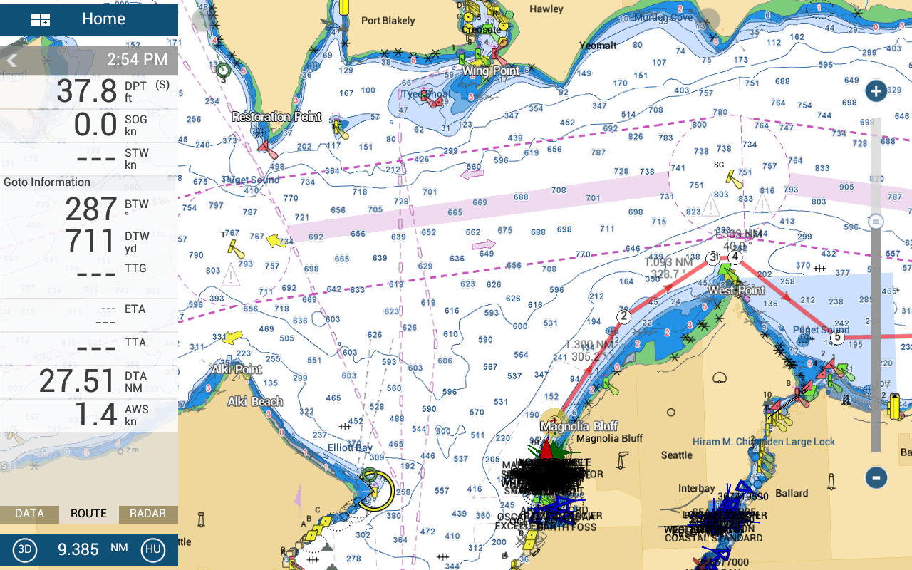 Of course, one of the main reasons I put the TZT2’s in was the DRS4D-NXT doppler radar, which is amazing. The target analyzer feature in particular, which is using the doppler technology, is great as it identifies targets moving towards you at more than 3 knots, and tags them in color, as well as ARPA targets. These targets show up on the MFDs and the Surface Book/TimeZero down below. I have not investigated as to whether Furuno is sending out the correct PGNs for the ARPA targets to show up on other products like Coastal Explorer.