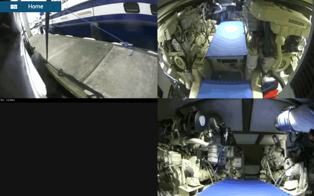 The cameras are mounted in the engine room and on the port side of the boat, and are connected to a single AXIS camera server in the engine room. It has an Ethernet connection up to the Furuno Ethernet Switch, and the MFDs can display all cameras at once, or individual ones depending on your choice. I use the port side camera while docking, and the engine room cameras while underway.