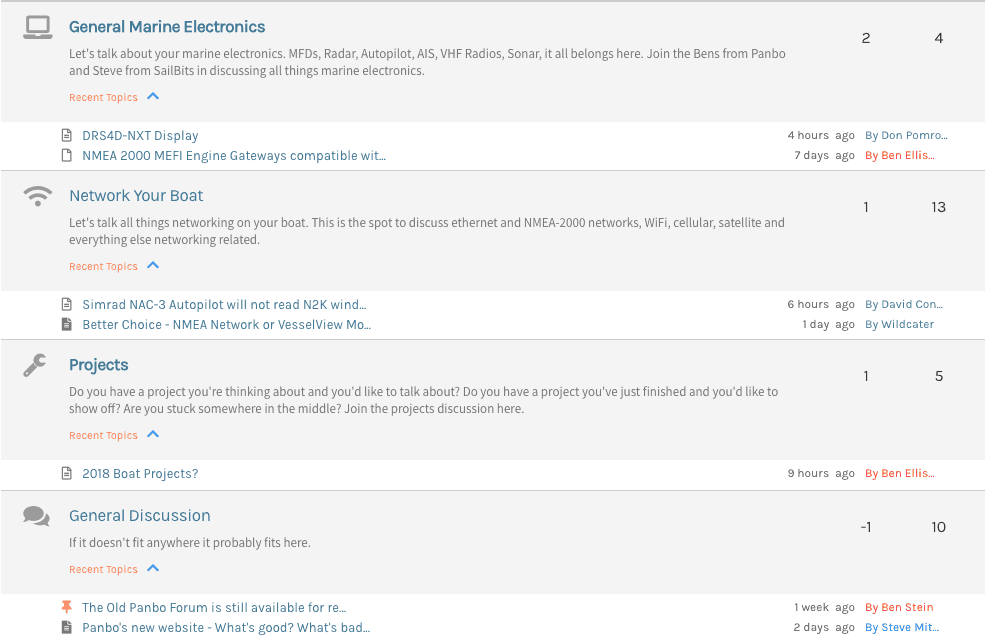 For the last year or so, I have wanted to build a community focused on marine electronics, networking and technology on boats. I have looked into different options for doing this, but it is a big responsibility to take on. In recent discussions with my industry peers at Panbo, I realized they were updating their site, and we thought it would be great to collaborate on a dedicated community forum for this purpose.
