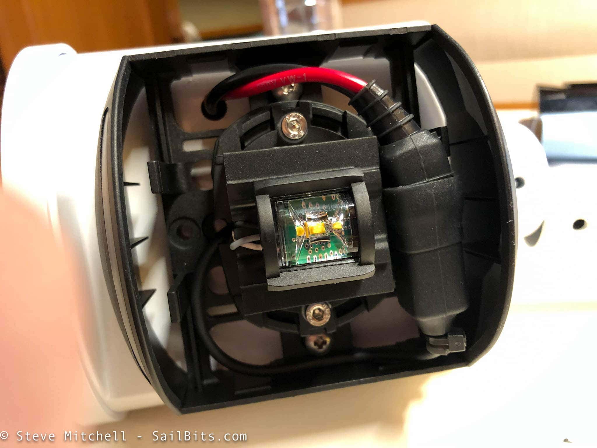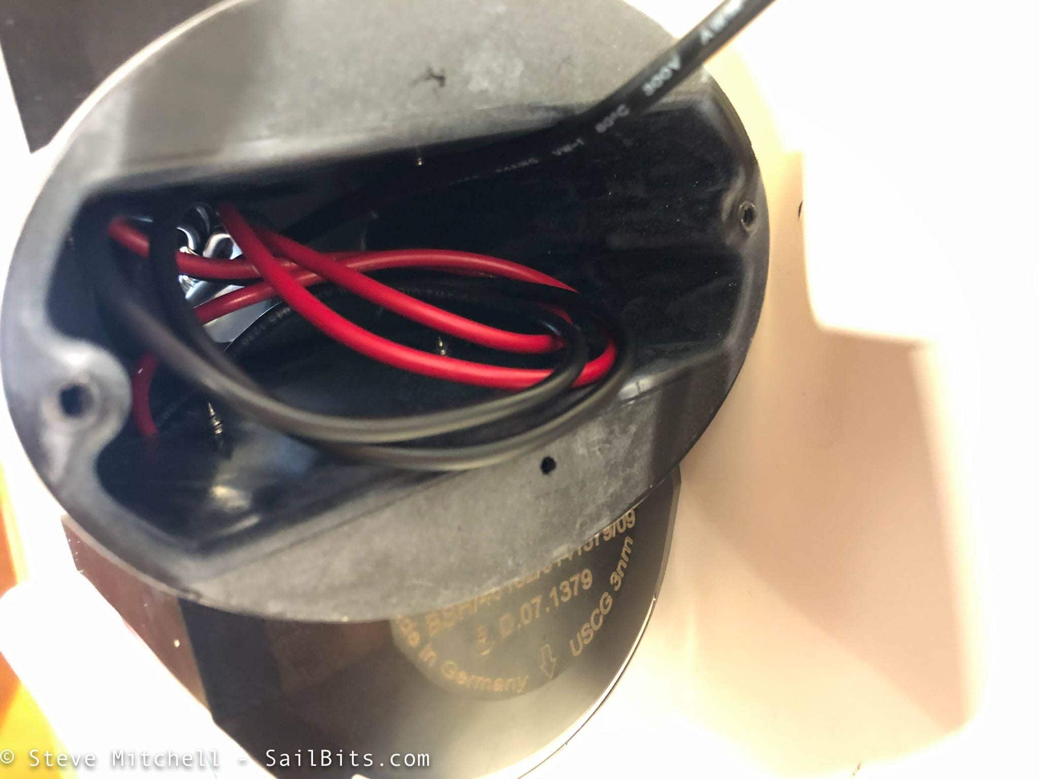 I will say that the Aqua Signal Series 43 is my least favorite navigation light to wire in recent memory. The connections on the back of it were designed by someone who wants to torture the installer, and I have concerns about long term viability as a result of that wiring. Conversely, the Aqua Signal Series 44 stern light (pictured above) was very well designed, with a waterproof connector to attach wires to, and an easy way to disconnect things if you need to service or clean the light.