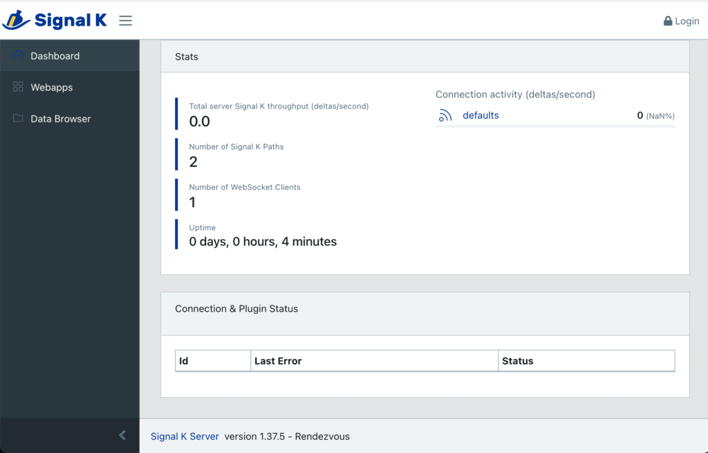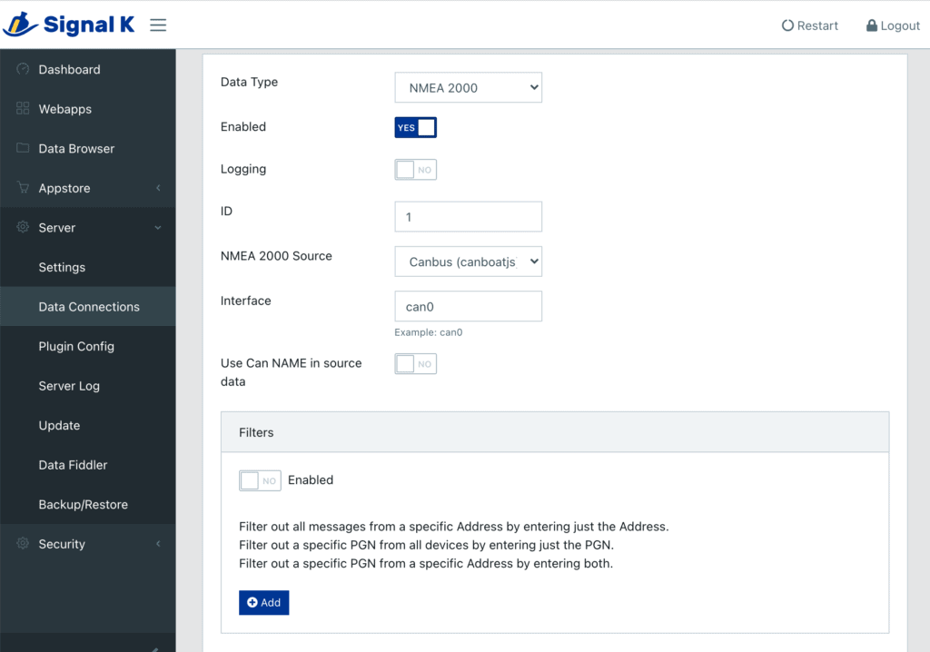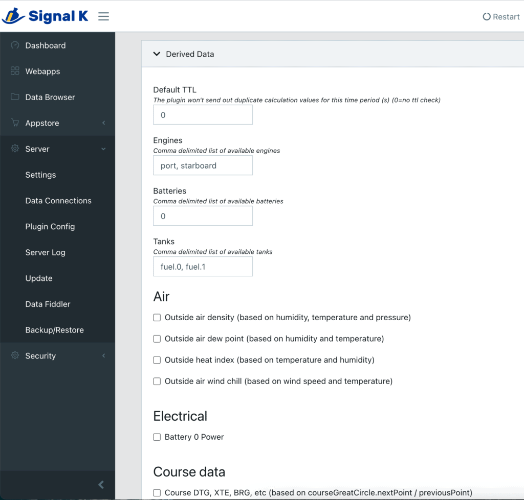 Some may wonder about my choice not to setup SSL – this is your choice, but I have found that serving Signal K over SSL, also known as a secure site or HTTPS, is resource intensive. On a busy NMEA 2000 network, it can add overhead that is not necessary if your network is secure.