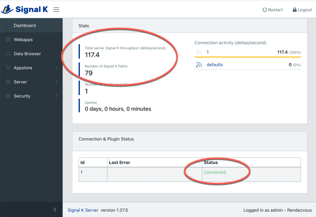 hello, I was curious if you could offer advice on connecting my pi running signalk as configured in your article, to an ikommunicate device on the same network. My Pi running signalk is 192.168.10.13 and my ikommunicate gateway is at 192.168.10.22. I can log into both devices but they wont connect. I added a “data connection” with, websockets and 192.168.10.22 and port 80, but i get no deltas coming in