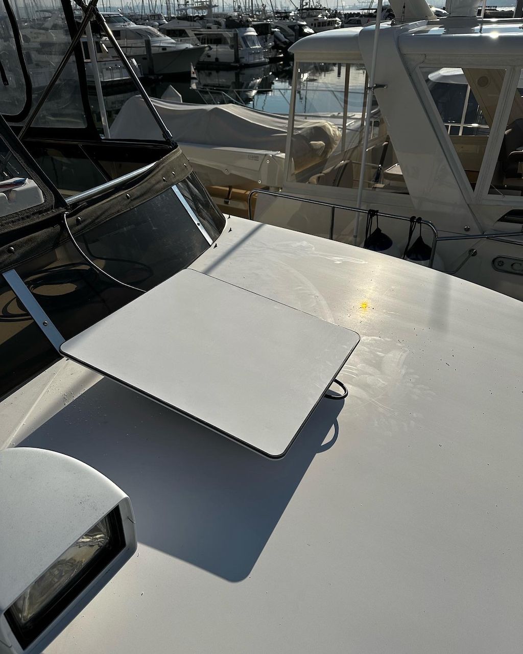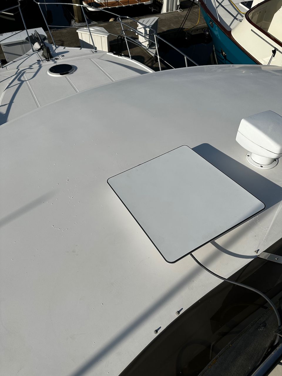 I had two potential places to install the dish - on the radar arch mount where my current residential Starlink is mounted, or on the brow in front of the flybridge. The 25 foot included cable between the power supply and dish was going to be an issue for the radar arch, but I also had a lot of challenges coming up with enough real estate for the wedge mount at that location. I was also a little concerned about having ~13 pounds of dish that high up and exposed and mounted as a wing.