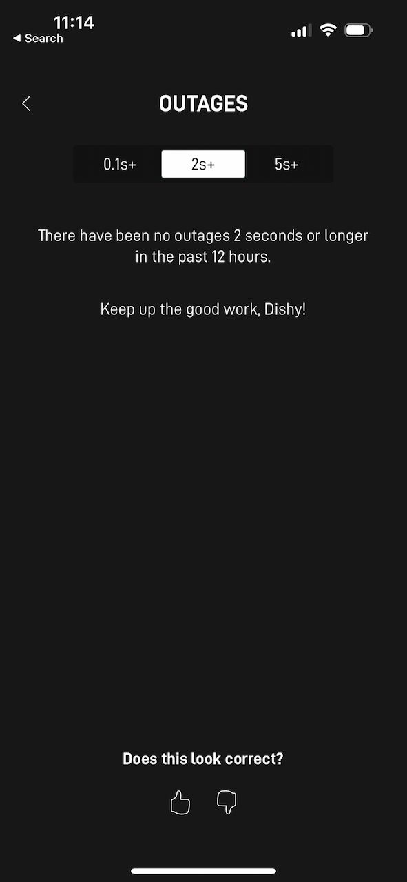 "Network Issue" sounds like an issue with their infrastructure that isn't specific to my dish. Could be that the cell I'm in is also oversubscribed I suppose. "No Signal Received" could definitely be because I'm moving or the quality of my connection, but it was for such a short amount of time it likely didn't affect anything.