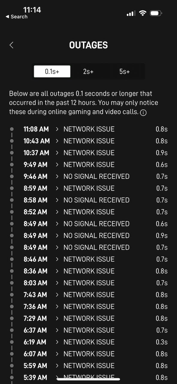 There are still outages listed in the 0.1s+ tab - mostly "network issue" with a few "no signal received". They are as defined: