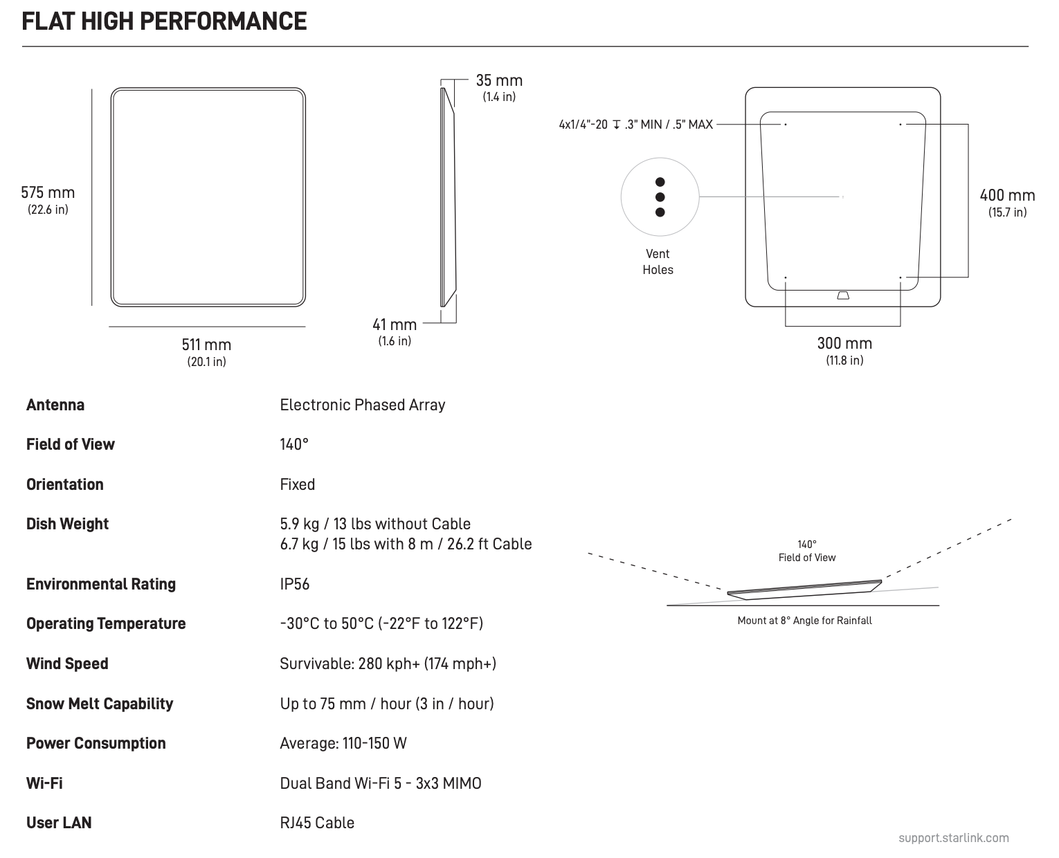 Having more satellites will definitely help keep a better signal. Rain fade is also a real thing and with flat-mounted RV/Residential dishes, really reduces performance. This will definitely be nice in my region where it tends to rain a lot. - Improved Weather Resistance - rated IP56, meaning it is resistant to water jets. Additionally, it performs better in hot weather, with download speeds typically 3x better at 95 degrees F when compared to the standard alternative. It also provides 1.7x better snow melt capability.