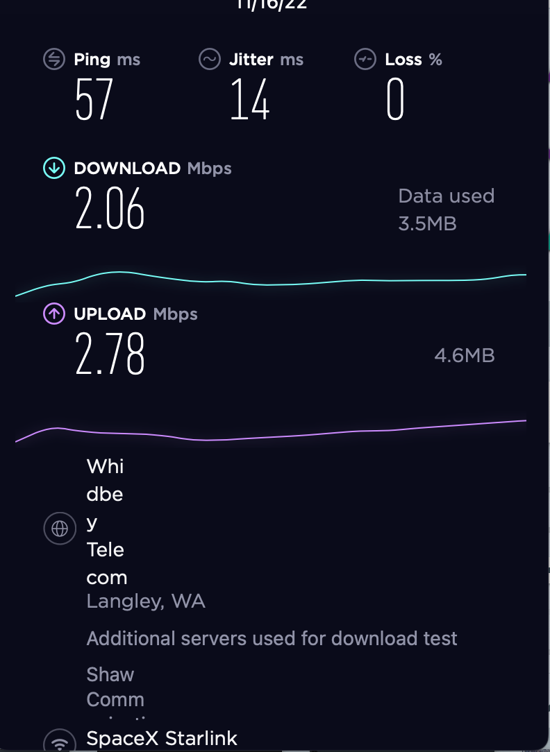 Seattle is one of those areas, and Elliott Bay Marina is a perfect example of how the RV plan is unusable in a lot of cases. The marina has really terrible cellular coverage in most of the slips, so Starlink seems like a godsend. Unfortunately during most working hours and weekdays, the RV plan will slow down considerably, with upload speeds hovering around 1-2Mbps - not enough for a good quality Zoom or Teams meeting.