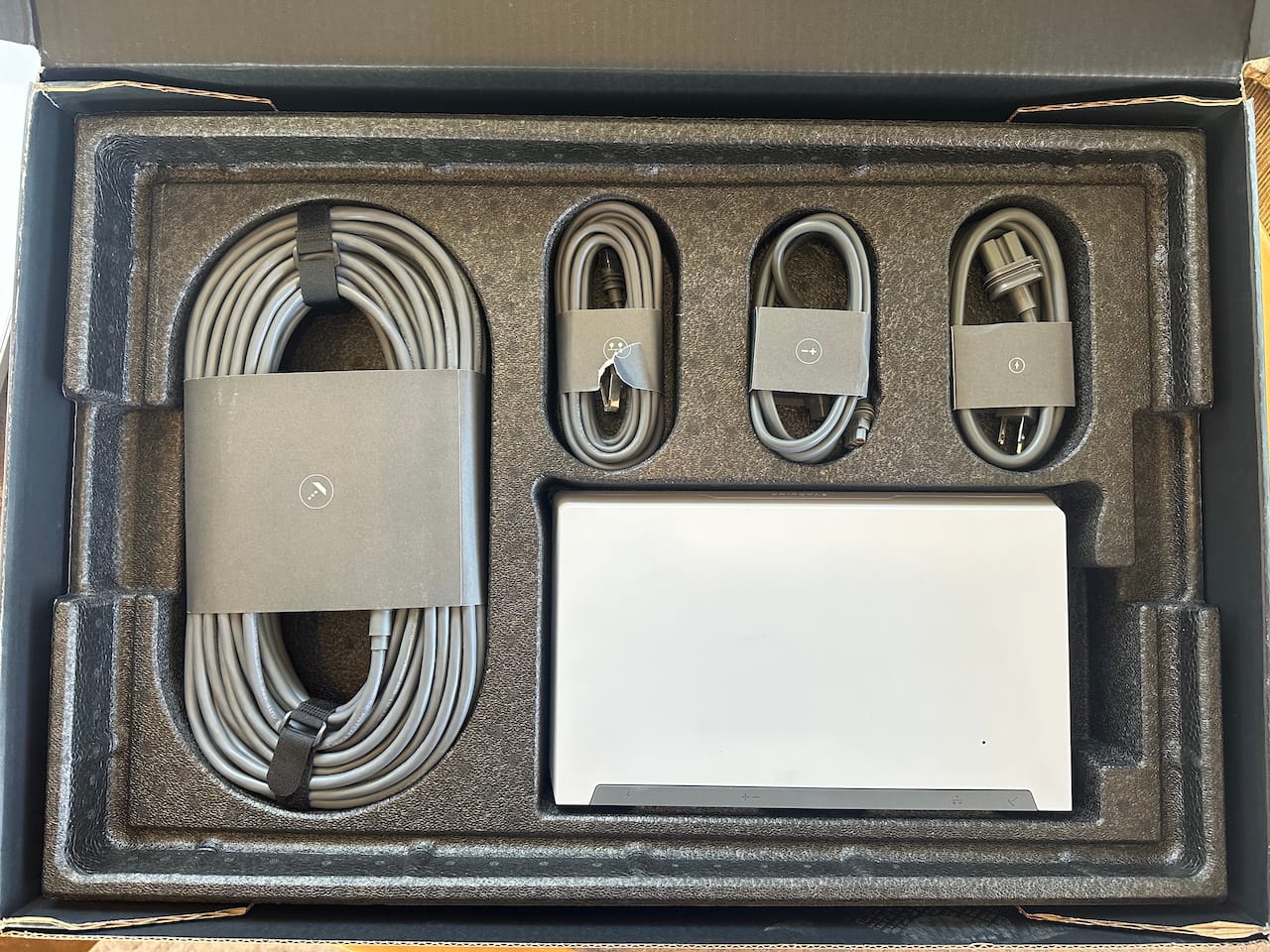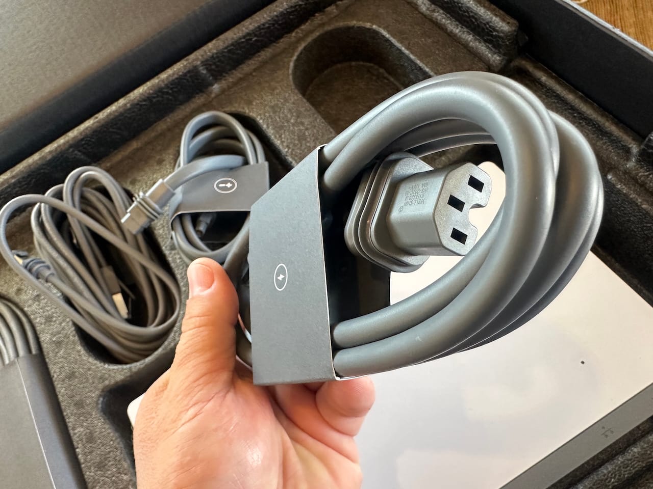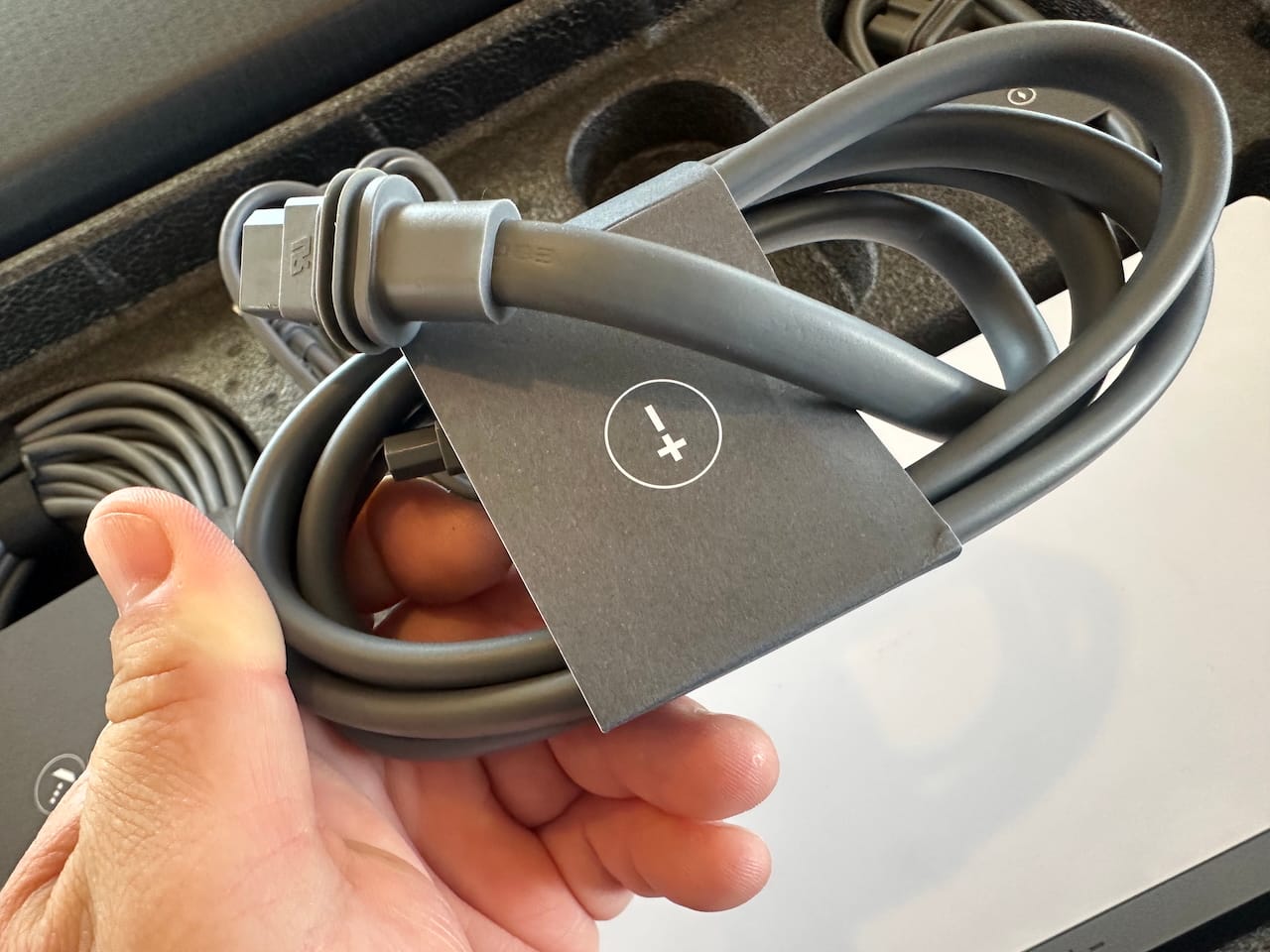 The AC power cable is pretty short, and comes with a proprietary end, but is waterproof like the rest of the cables.