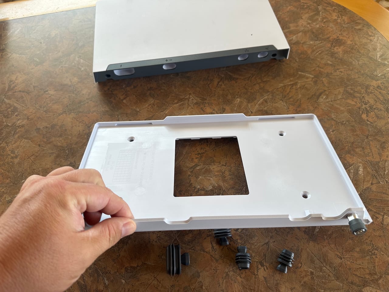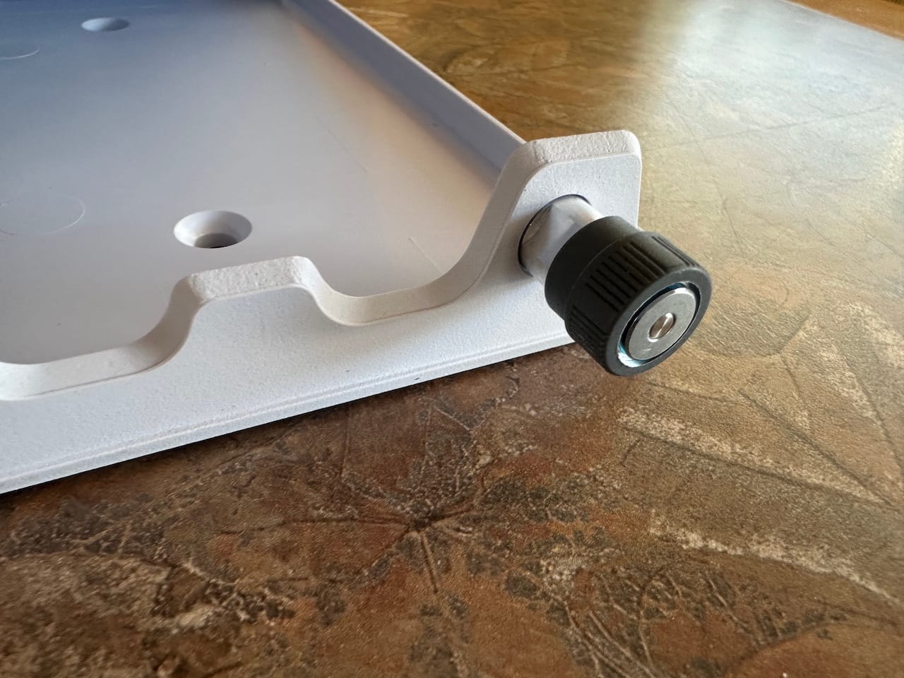 Pretty standard getting started card. Plug a bunch of stuff in and magic happens. They do also provide a diagram and measurements for the wall mount option on the power supply. To unlock the base is backwards from the way my mind thought it should be - you rotate the dials as if you're tightening them - you can see me struggle and fail in the unboxing video on this part.