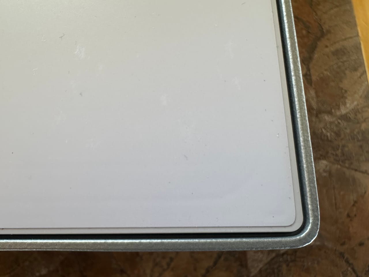 The dish surface itself has some sort of matte coating on it that ends before the actual edge of the dish. Not sure what that is all about, but I'm sure we'll learn more as folks dig into it.