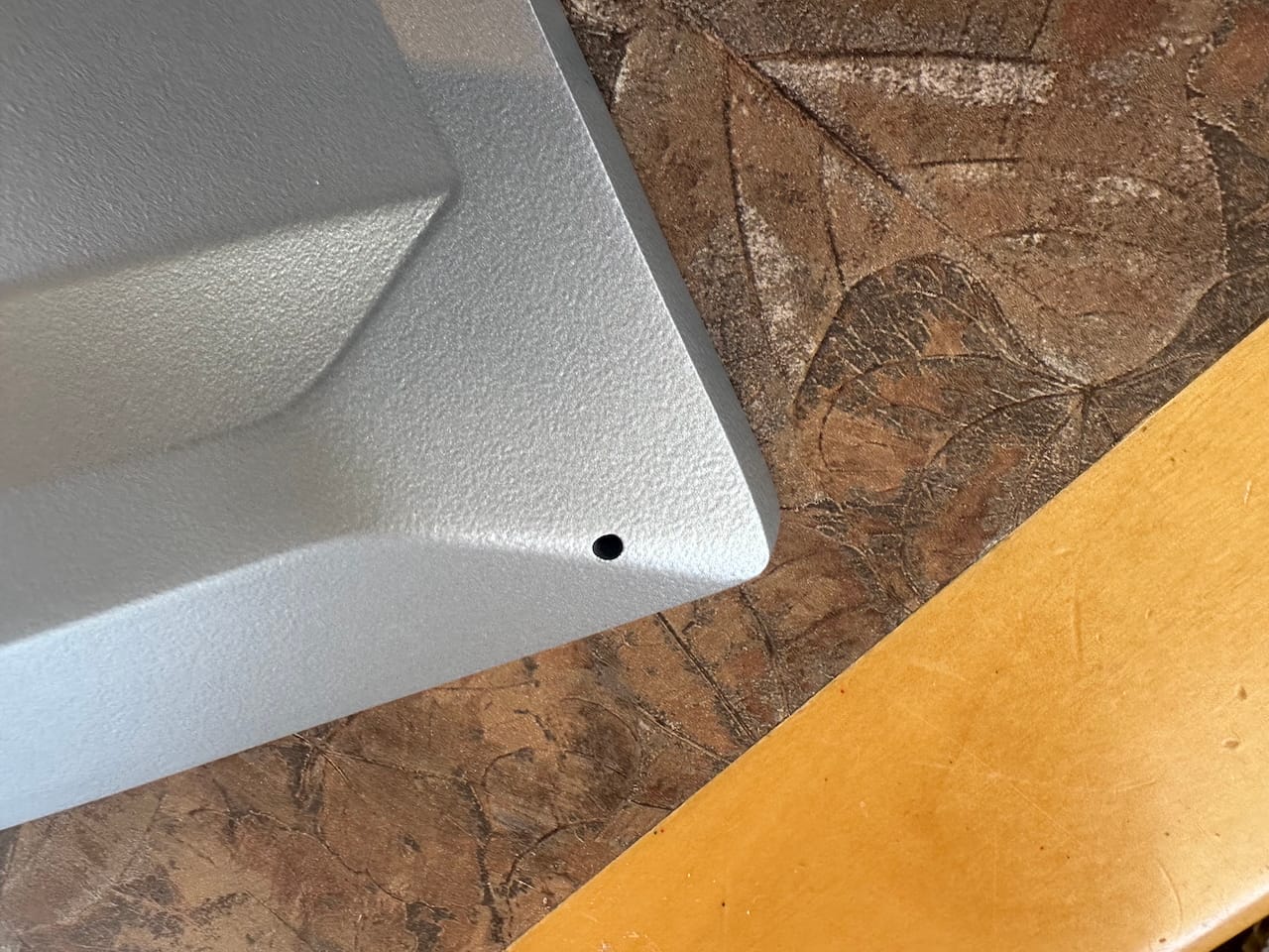 The entire bottom and edges are made of grey powdercoated aluminum.
