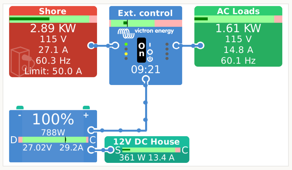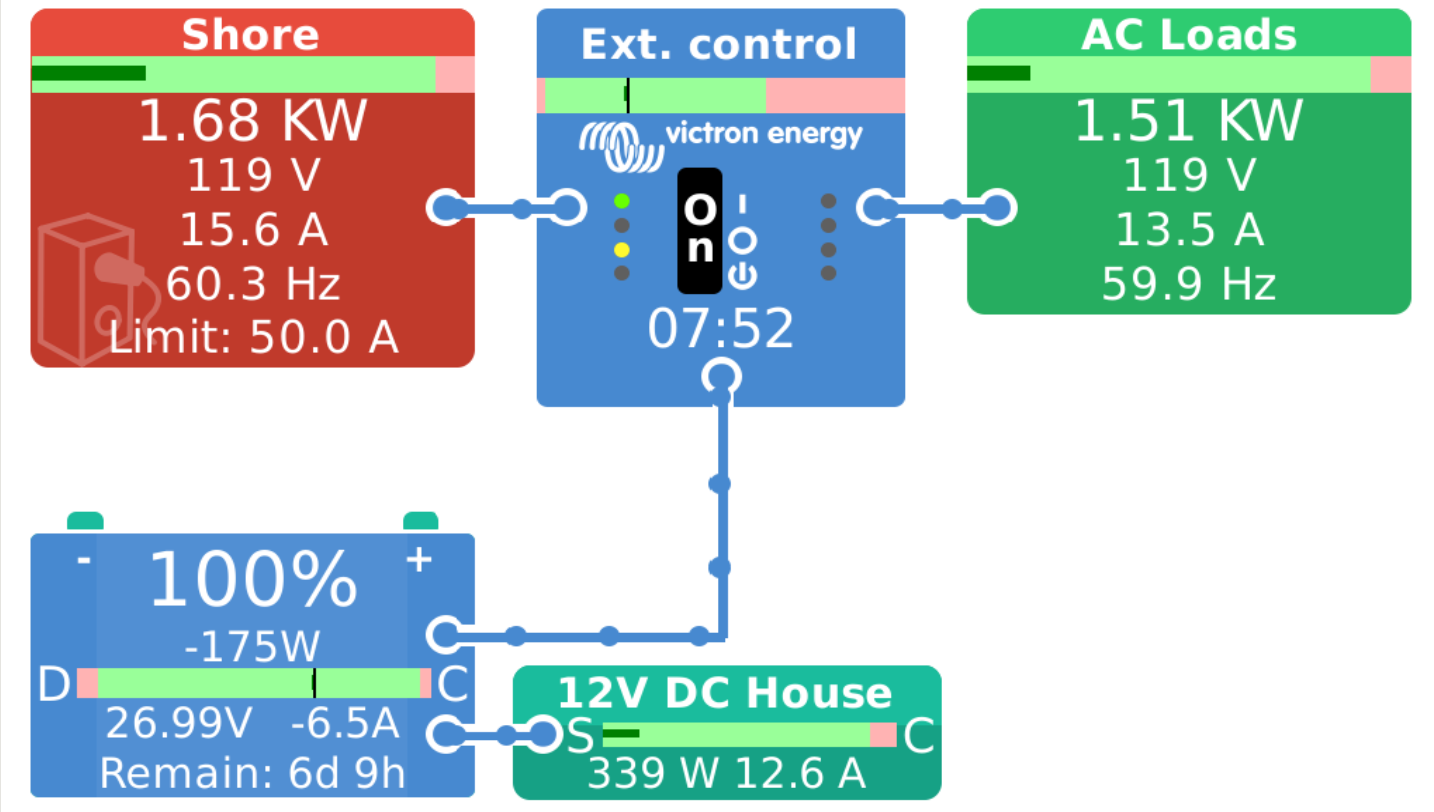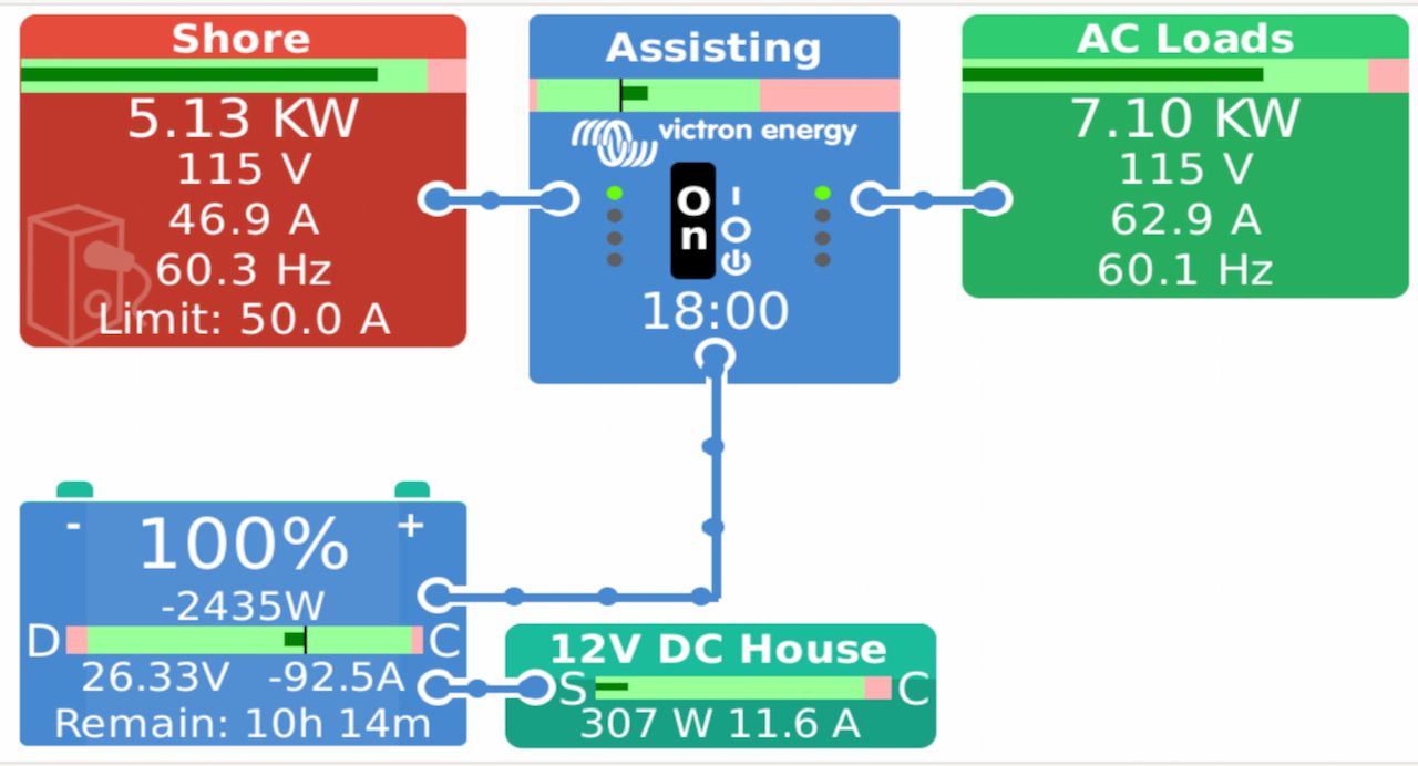 I like this system because it puts a ton more relevant information in one place. The simplified version Victron provides is good, but having things like voltage and frequency allows me to see if there is a transient problem or other issue.