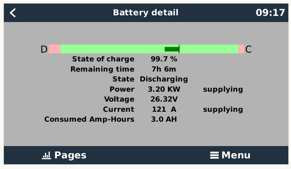 The battery detail page has a few more bits than the main page - mainly consumed amp hours, and the state.