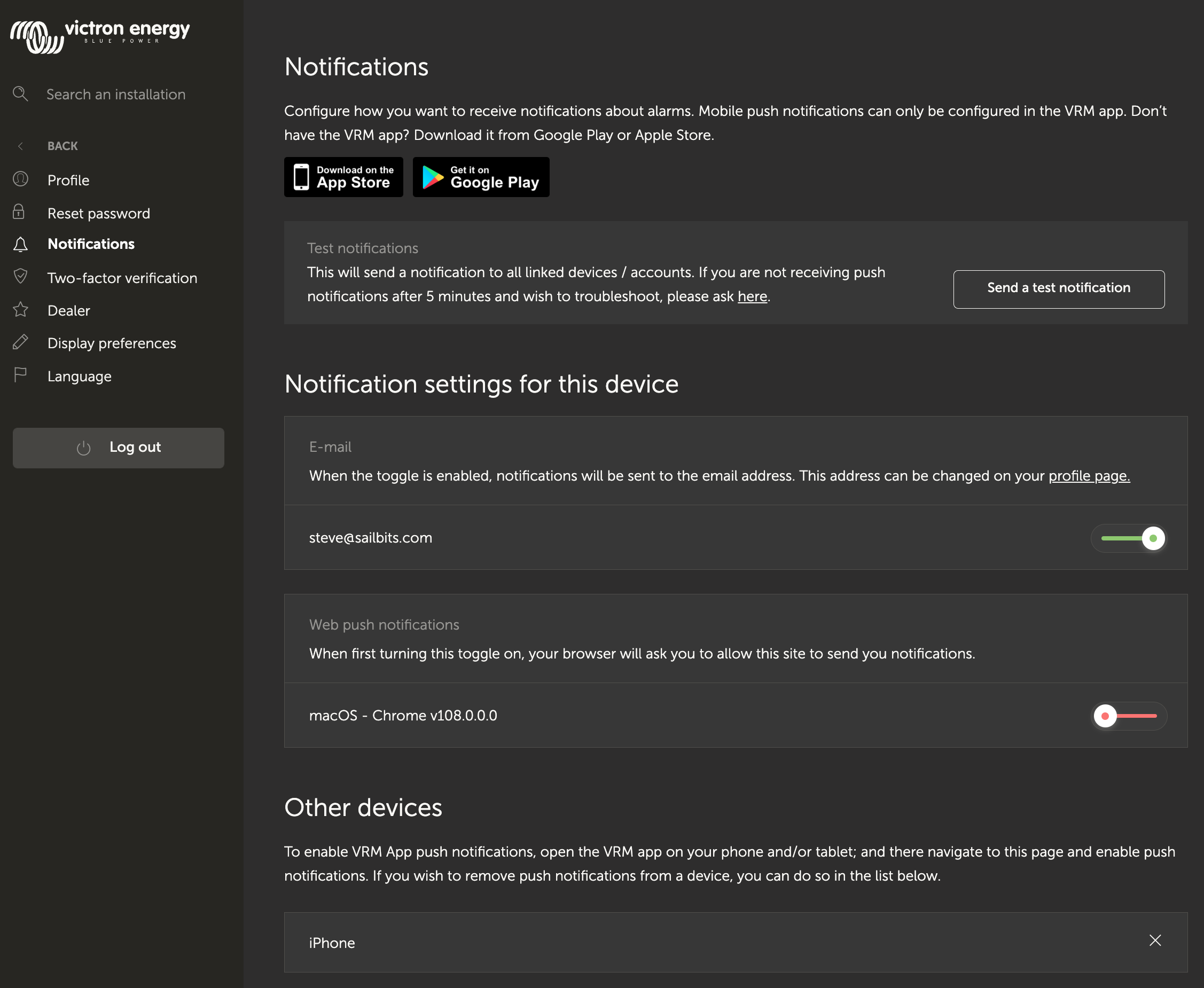 Victron has great visibility with their GX series of products, but there's an open source product that makes it even better. And recently Victron have updated their systems so you can get push alerts.