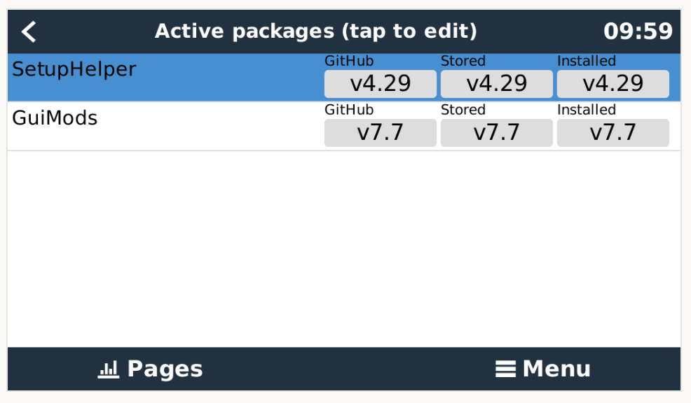 The "Auto install packages" from the previous screen, I believe, keeps the latest version that is downloaded installed. The whole PackageManager setup is a bit unclear at some points, but I understand the need for it since Victron have not really provided a 3rd party installation management system. You may have to experiment a bit with the settings in here if you don't want automatic updates.