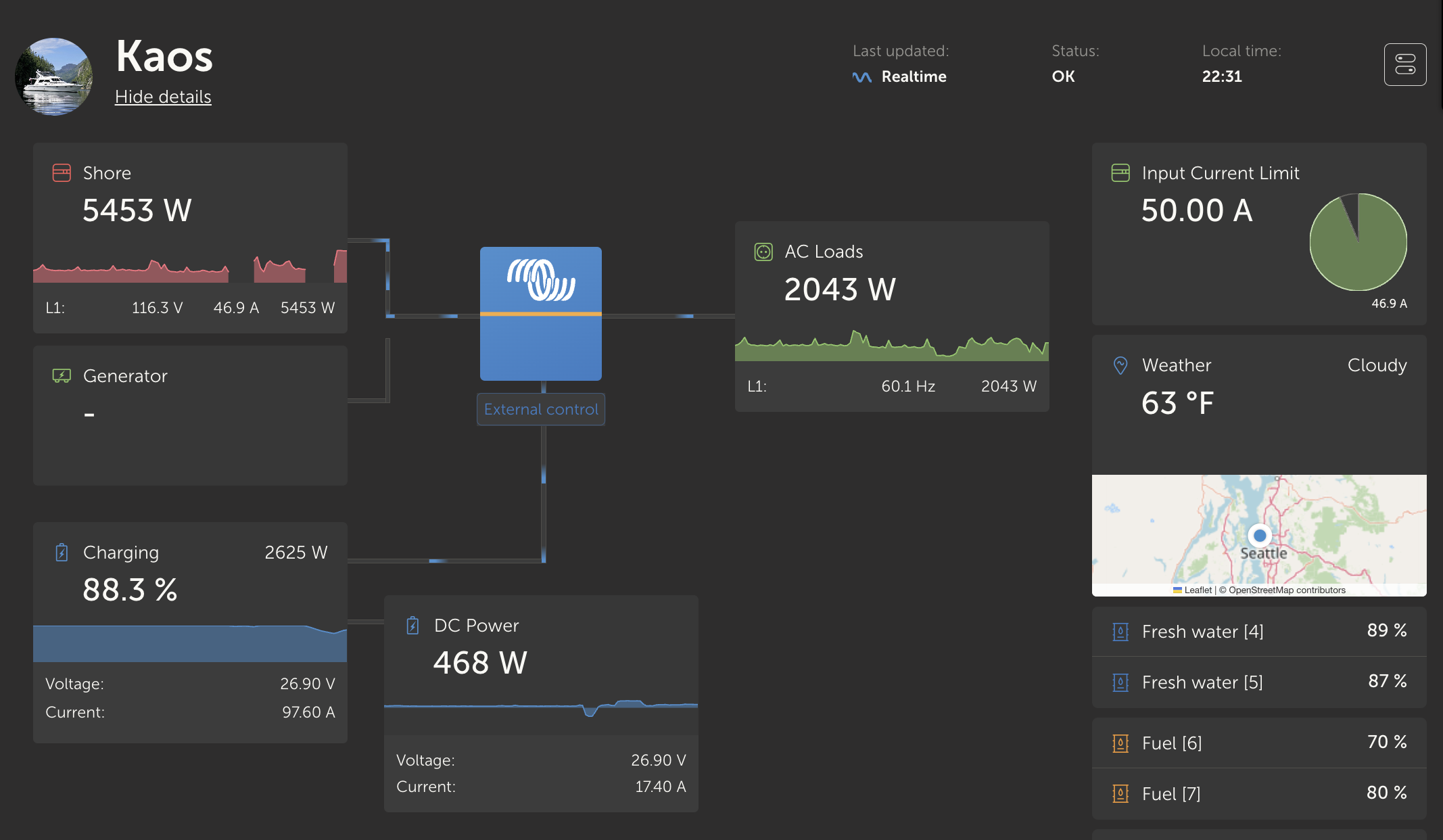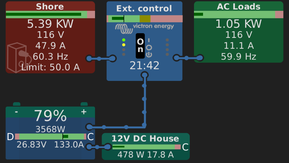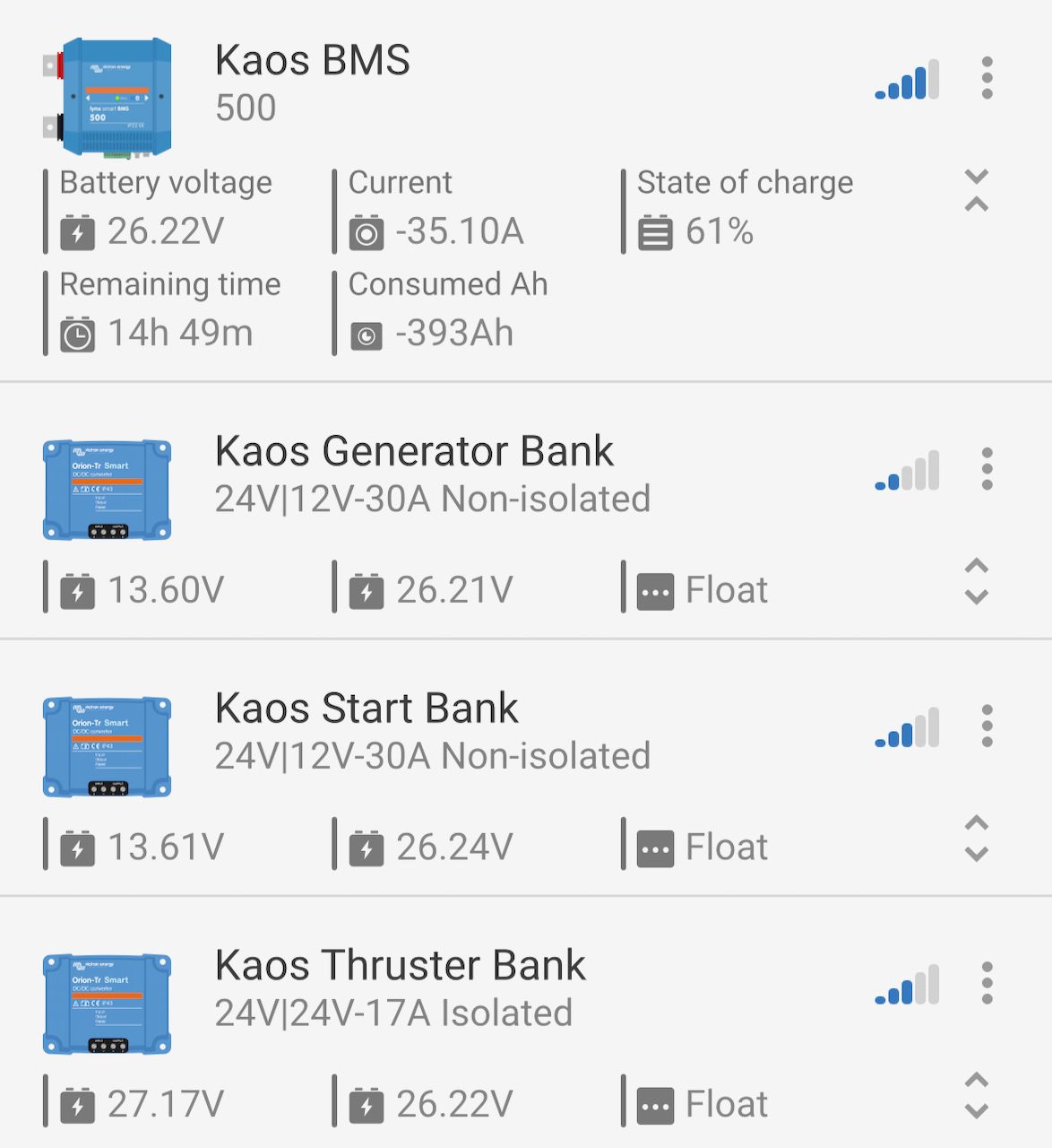 As a result, I end up relying on the Victron apps and displays, which are nice, but it would be great to have all of this in one place, and be able to drive global alarms from there as well.