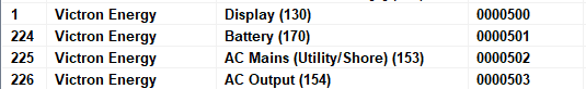 The two main places I found info was in their section on MFD integration and here on Changing N2K Instances. I am loath to follow any of these instructions for changing instances, since they start off with a warning that they advise you NOT to do this or you might inhibit the Victron devices from talking to each other.