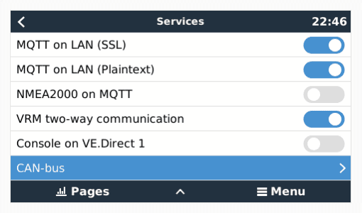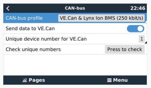 Once inside the CAN-bus menu, using the default profile, and turning the “Send data to VE.Can” on should get traffic flowing to your NMEA 2000 network.
