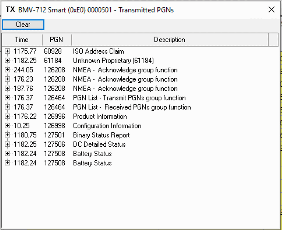 The right hand device also has a bunch of proprietary PGNs which I assume would be used to exchange more detailed info that Victron needs to track, or perhaps control devices via NMEA 2000 that are Victron specific.