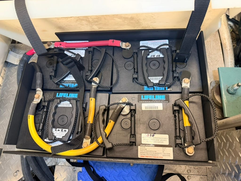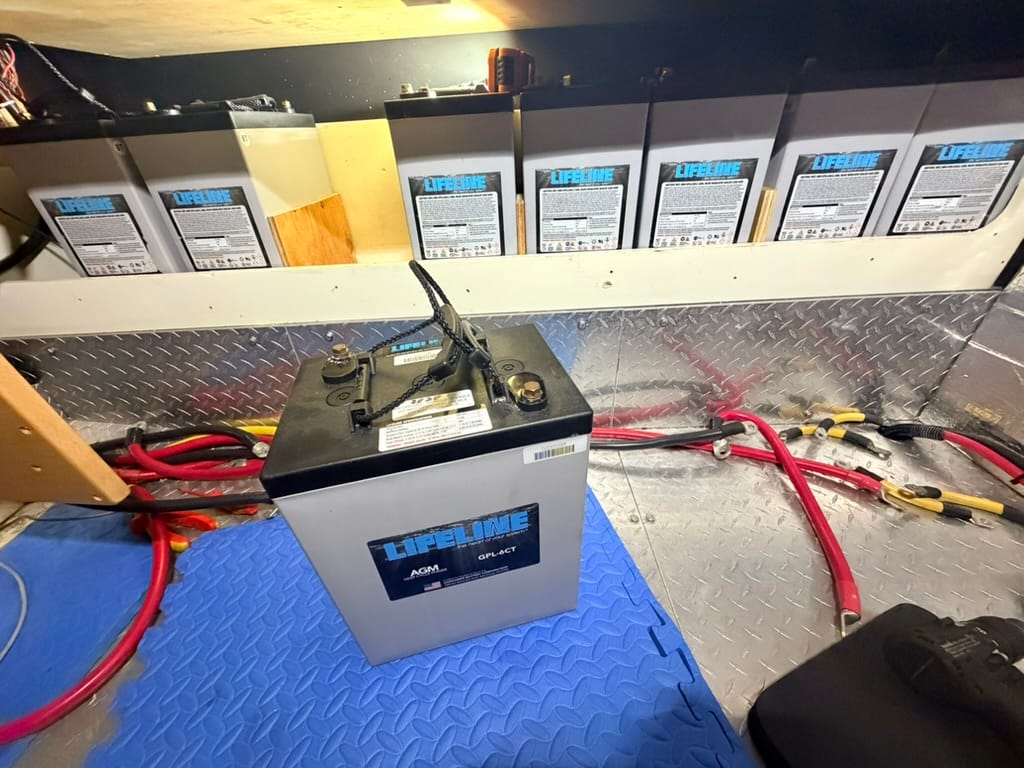 Two areas that Aruna's system suffered in were overall capacity and charging speed. She came with 12x Lifeline 6v GPL-6CT AGM batteries that were from 2020. I tested each one thoroughly in isolation, and they all passed with flying colors. This gave me 1800 amp hours of total capacity, with about 900 amp hours of usable capacity.
