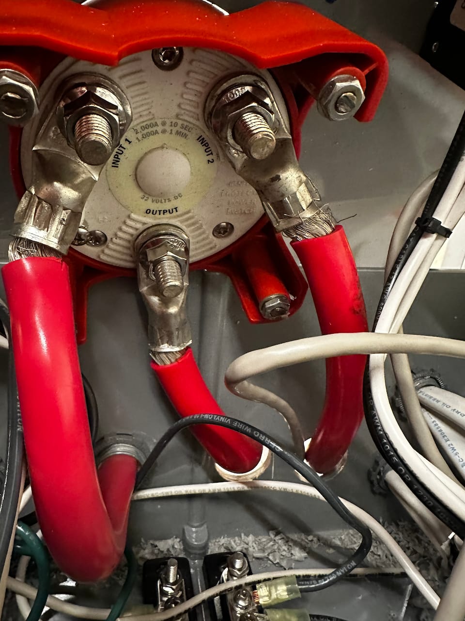 The watermaker inverter was some of the worst electrical work I've seen in years, and that's saying a lot. Directly wired into part of the house bank (not all) without any fusing or shutoff, a really crappy 3000W inverter was connected directly to the generator AC out as well without any breakers or switches. There was also a scary box hidden in a closet near the control panel that you had to use to select whether you were on generator or battery power, and no lockout. If you switched it at the wrong time, you'd create a short circuit.