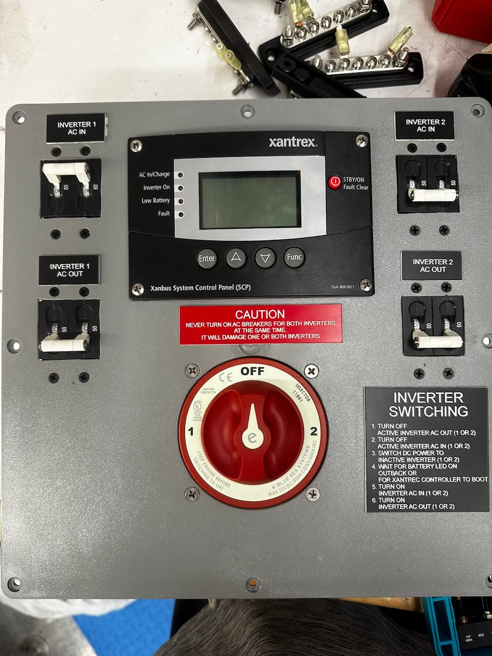 This was the custom box built to switch between inverters.