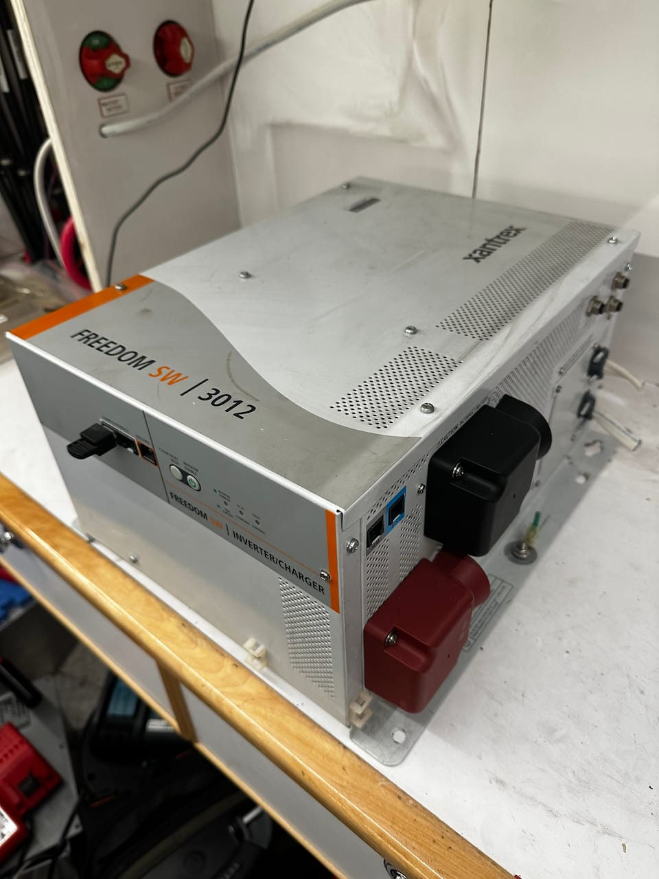 The two inverters for house loads were a Xantrex 3000W inverter, and an Outback 2000W inverter. The Outback had been installed originally when the boat was built, and was not in great condition. The Xantrex was added later on, and someone added a switch box to choose between the two that was a nightmare of poorly connected AC wiring, loose crimps, and more. The Xantrex also shut down randomly, threw many different errors, and had a bad fan noise.