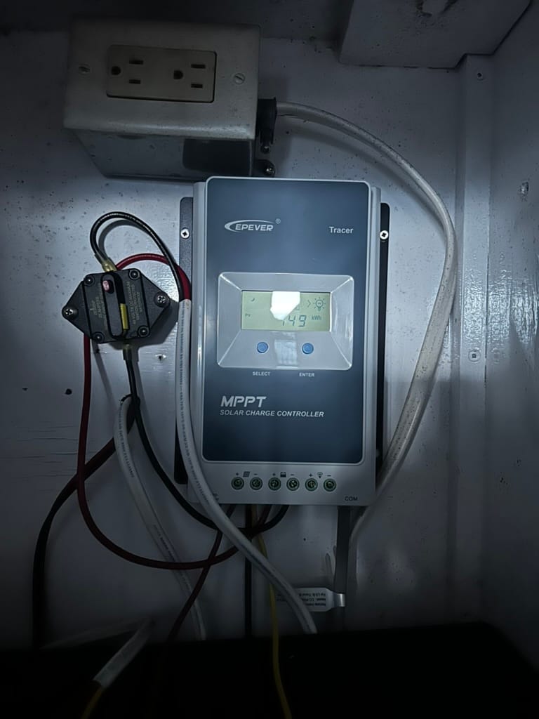 I replaced sections of wiring, tested each panel, and added two Victron MPPT controllers to replace the aging crap that had been used before. Neither one of the controllers had fuses or breakers in key spots, or proper wiring. Just like the water maker, this had been installed by the previous owner.