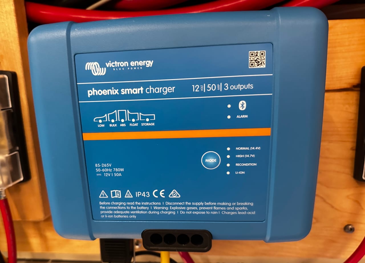 Within a few weeks, I replaced all of this with a single Victron MultiPlus 12 volt DC, 3000W inverter along with a Victron Cerbo, display screen, and a couple of 50 amp chargers to supplement charging while on generator.