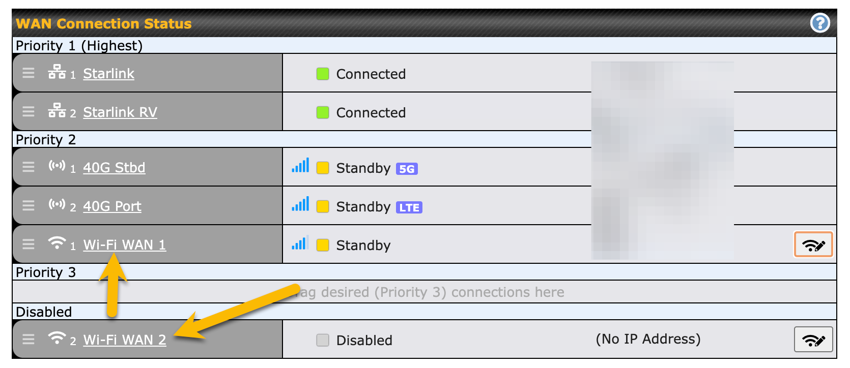 Some Peplink routers will only show one WiFi as WAN connection available, while others show one for 2.4Ghz and one for 5Ghz. This is somewhat inconsistent across the Peplink product line and firmware version. I prefer seeing them with two, and usually choose models that have that for my installations so that I have more flexibility in tuning it. Since 2.4Ghz tends to travel farther more reliably, being able to pick that is a benefit for reliability versus having it switch back and forth between the bands.